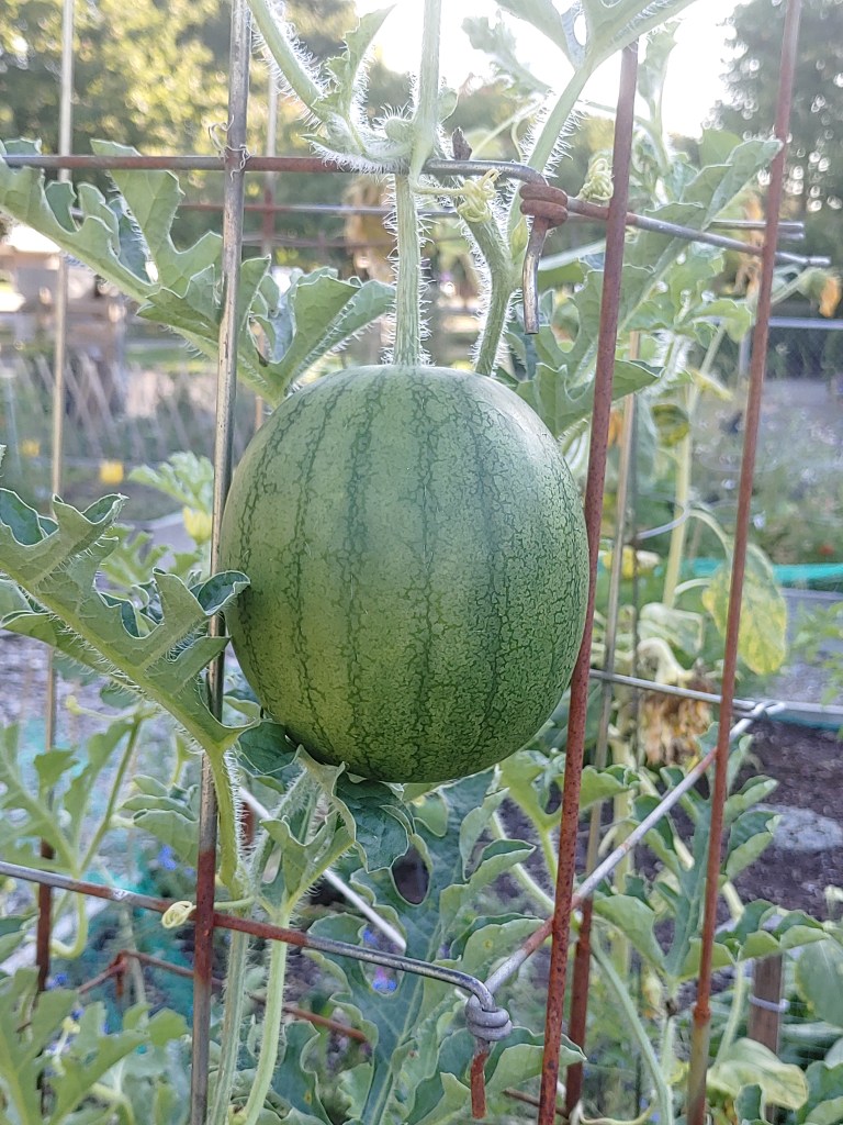 Some of the plants that did well were my grapes, which were picked On Aug 31 2021. I’m not sure about the weight of them yet. We have had so many potatoes, currants, pac choi and onions. One of the onions was as big as my hand. I had a couple of my watermelons survive and now I have late watermelons. Our night temperatures are at 11°C or 51.8°F and daytime highs at 22 to 25° C or 71.6 to 77° F. Last year we had 3 watermelons around Oct 10 2020. So maybe we will have some this year too. I planted the seedlings in the community garden on July 1 2021, I started them in clear cups months before then.