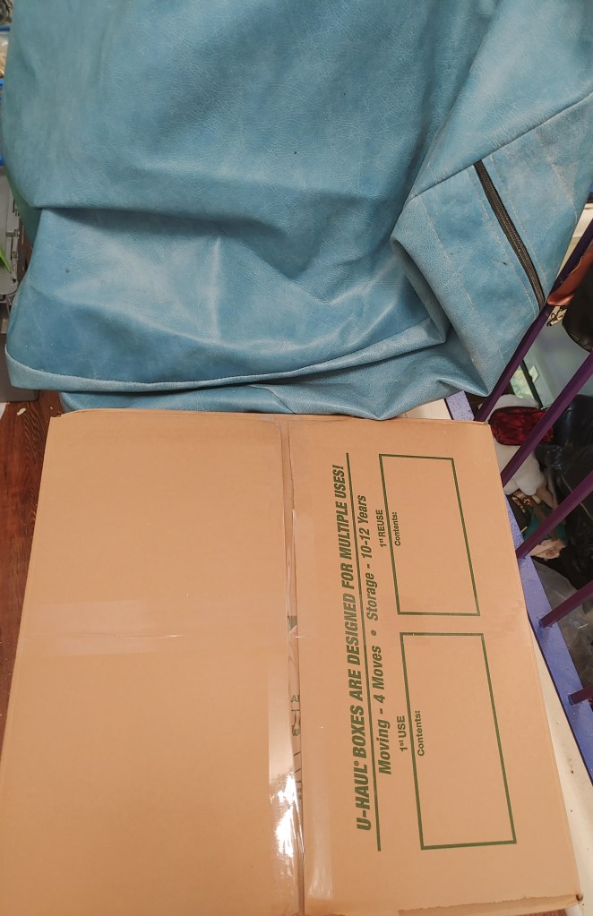 It fit! Tape it up and then put the chair bag in a small Uhaul box. Now it is ready for moving day.