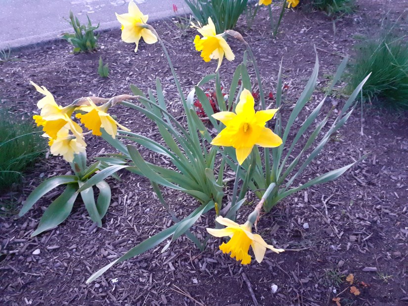 Out walking I saw so many bulbs some are at the end, others in full bloom. In my area the Daffodils and the Tulips are opening or are ready to open this week if the weather stays dry and warmer.