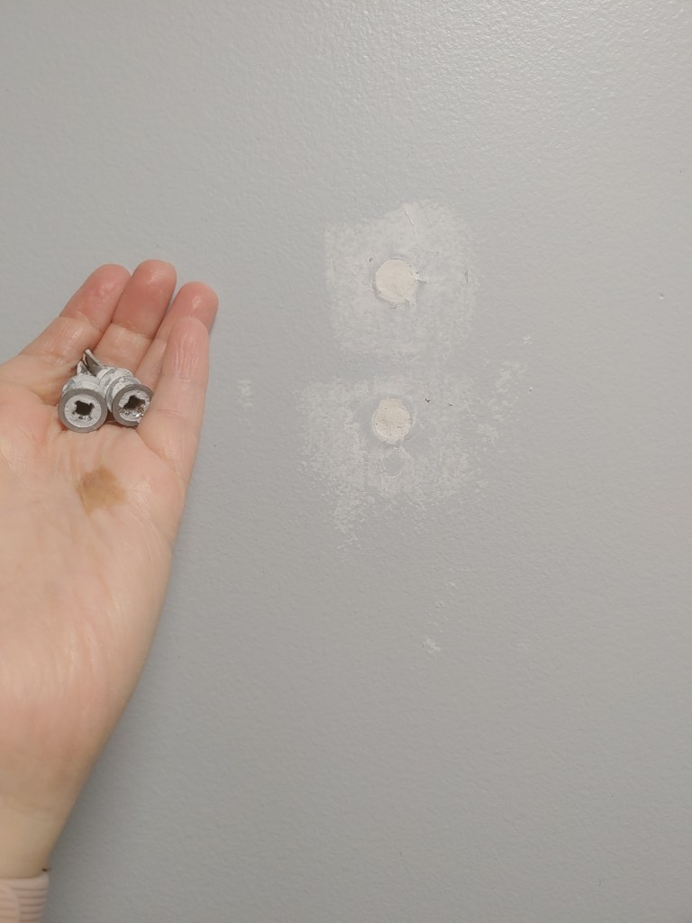 Photo taken by me, those are metal anchors I filled in where the holes where I still need to sand clean and prime the area before putting the colour on.