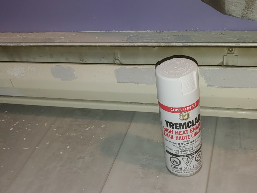 This has been one of my more challenging improvements. Being that the baseboard heaters are likely as old as the home. So about 47 years old, they get quite warm to the touch. Tips of spray painting metal.